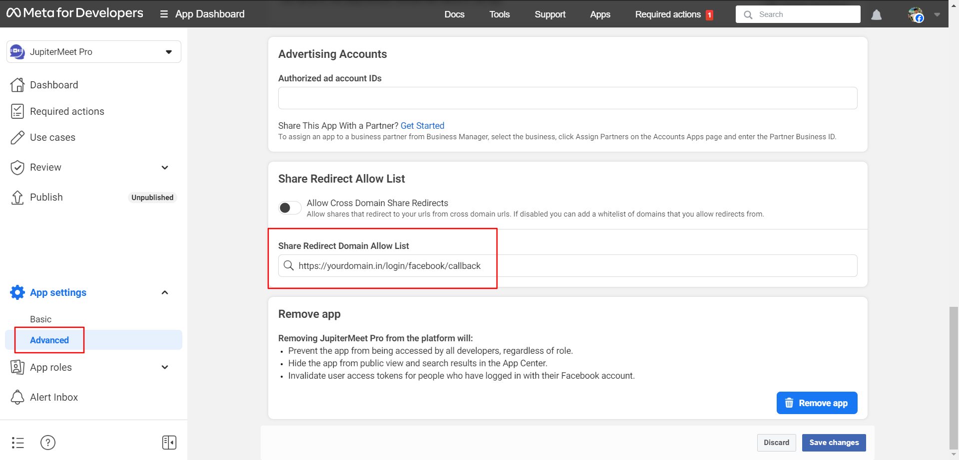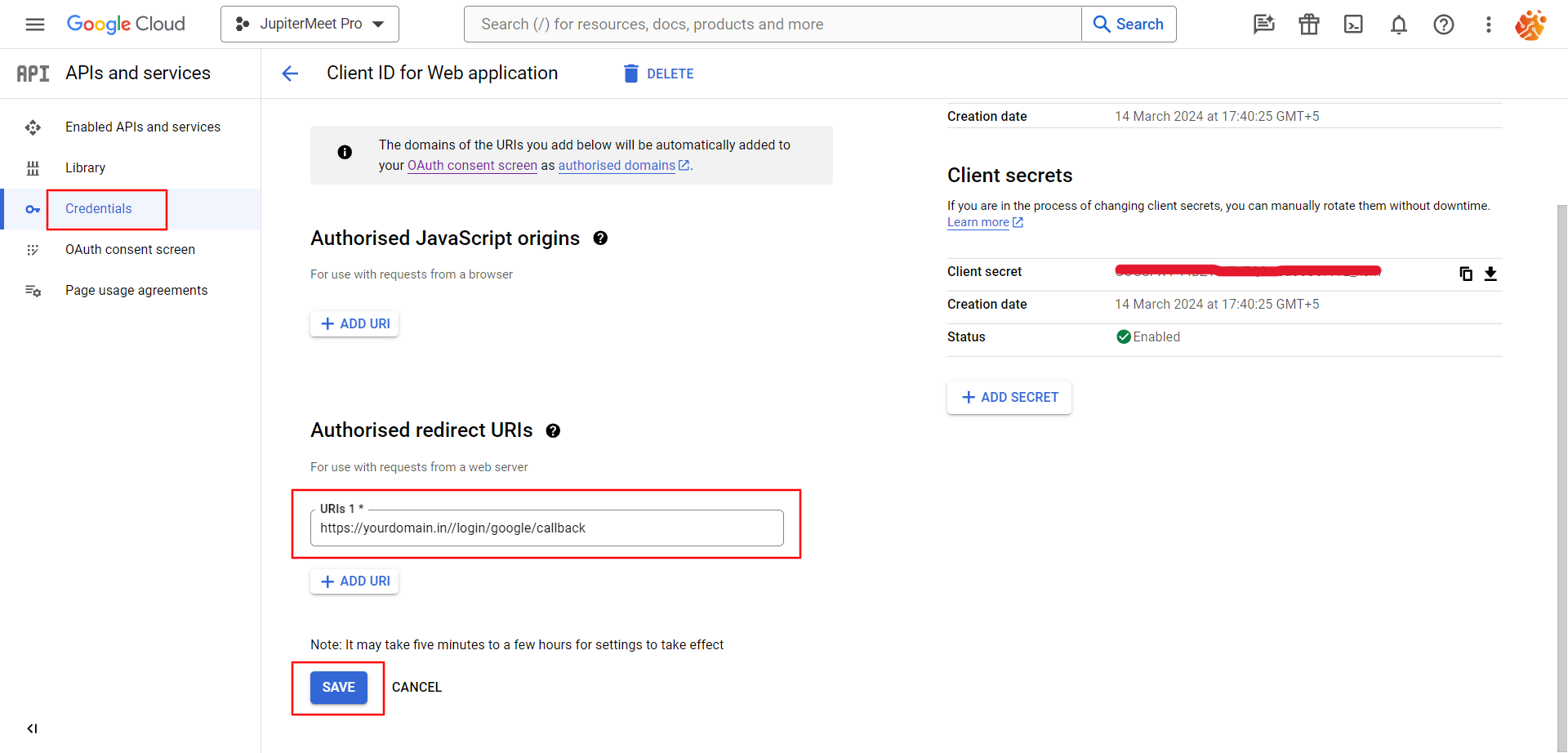 At last, go to the Global config section and copy Callback URL. Place it at the place of Authorised redirect URI, and click "Save".